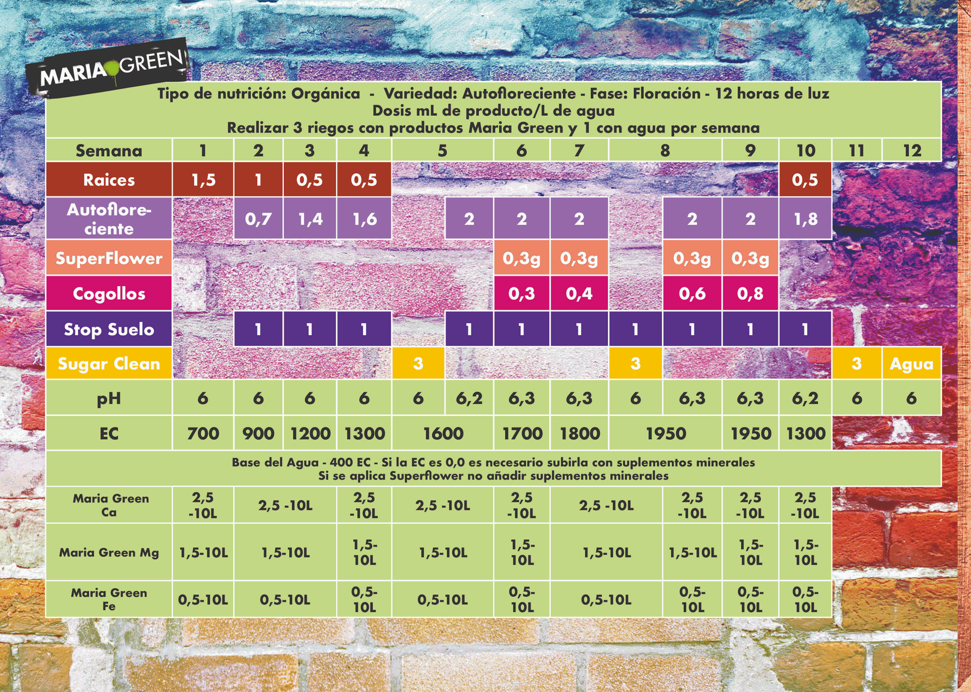 Las siguientes indicaciones están pensadas para realizar 3 riegos con productos Maria Green y 1 con agua por semana.